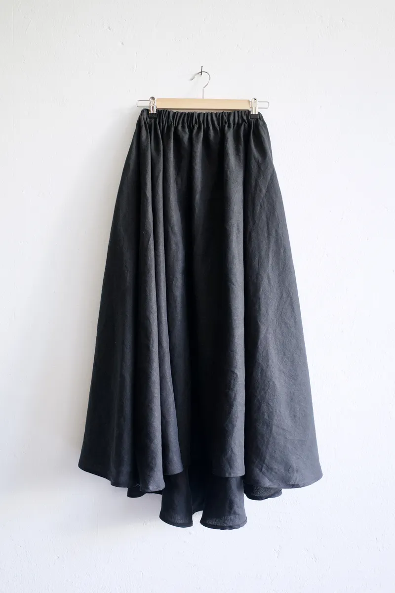 Wide-cut skirt with asymmetrical ending