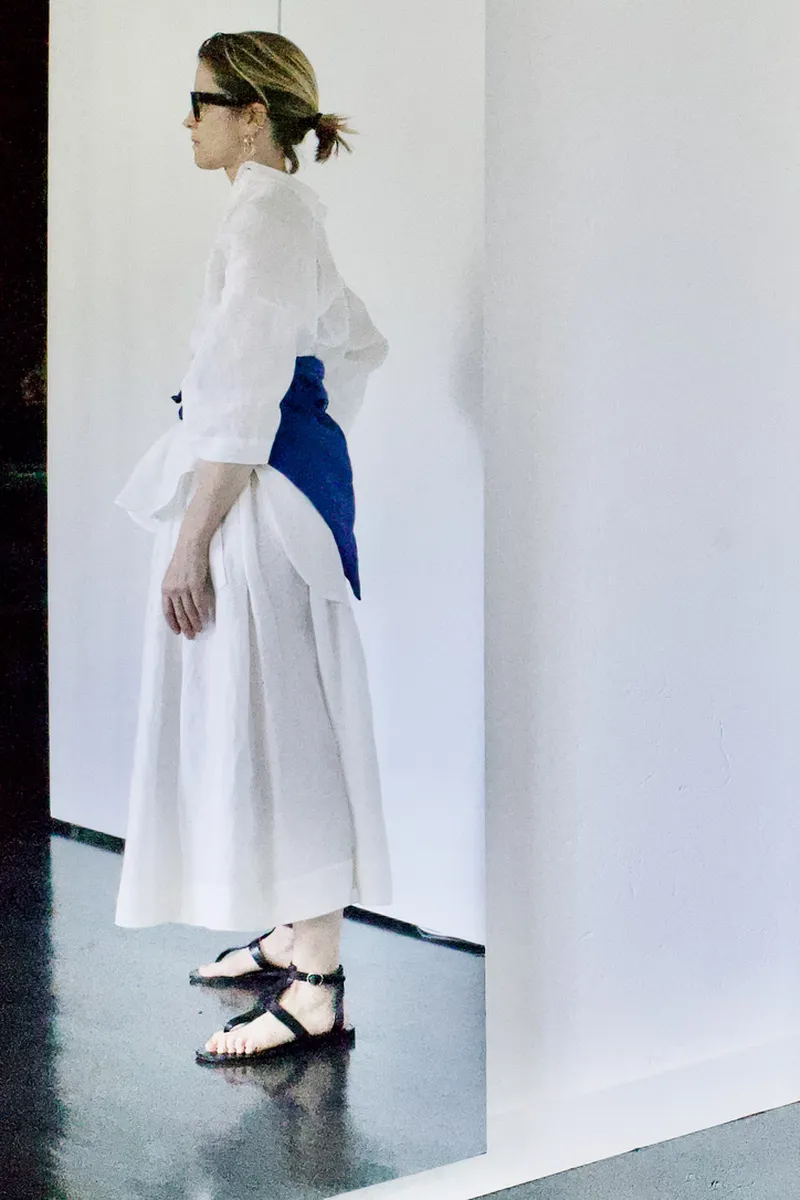 Here with SHORTARM SHIRT and PADDED TRIANGOLO both in the same linen.